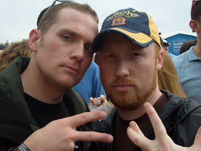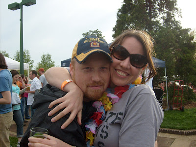 Now, in early celebration, Mike and I had an excellent time in Hickory, NC this weekend for the Hickory Hops Beer Festival. The selection of beers was absolutely fantastic - it was just as great as the BeerFest in Durham and Raleigh. Less of an international feel, but it was great to have so many local beers. One major comment for the planners though - HAVE FOOD AVAILABLE. A 6 hour beer festival lacking even ONE food vendor is a major event faux pas. There were a couple local restaurants within walking distance, but they were pretty much "sit down" in nature and not conducive to festival fare. Next year, have some food booths, folks!